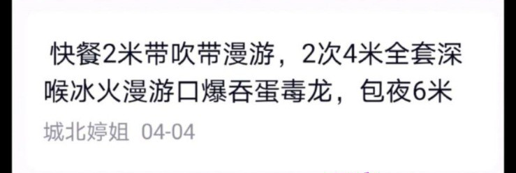 小黄文就不写了,简单聊了一下约了时间,楼下遥控上楼,然后洗澡,服务还可以,开大还是蛮爽的。 ...